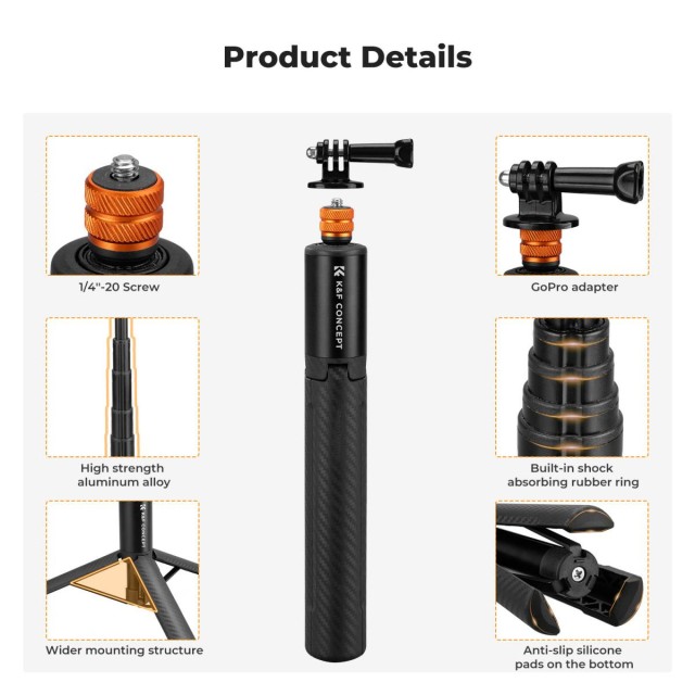 K&F Concept Invisible Selfie Stick, Extension Long Pole(120cm/47.2in) for Insta360 Sports Camera GoPro DJI Action, 1/4" Extended Monopod with GoPro Adapter.