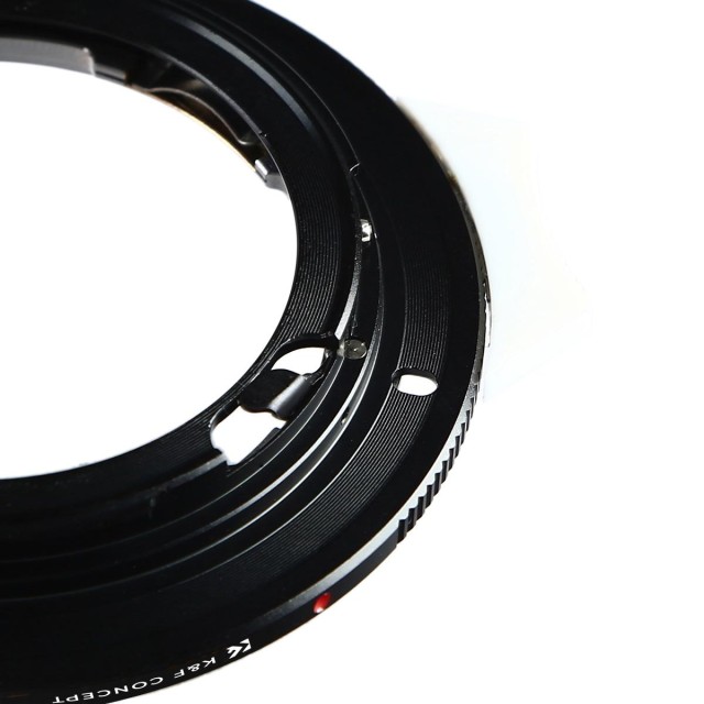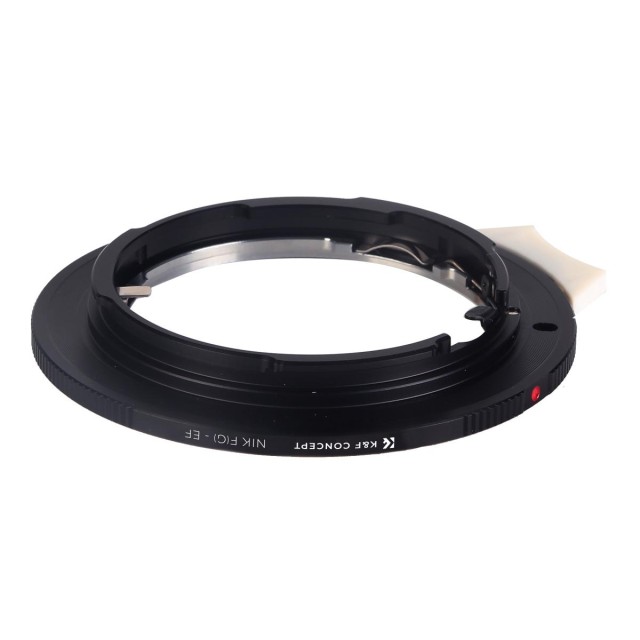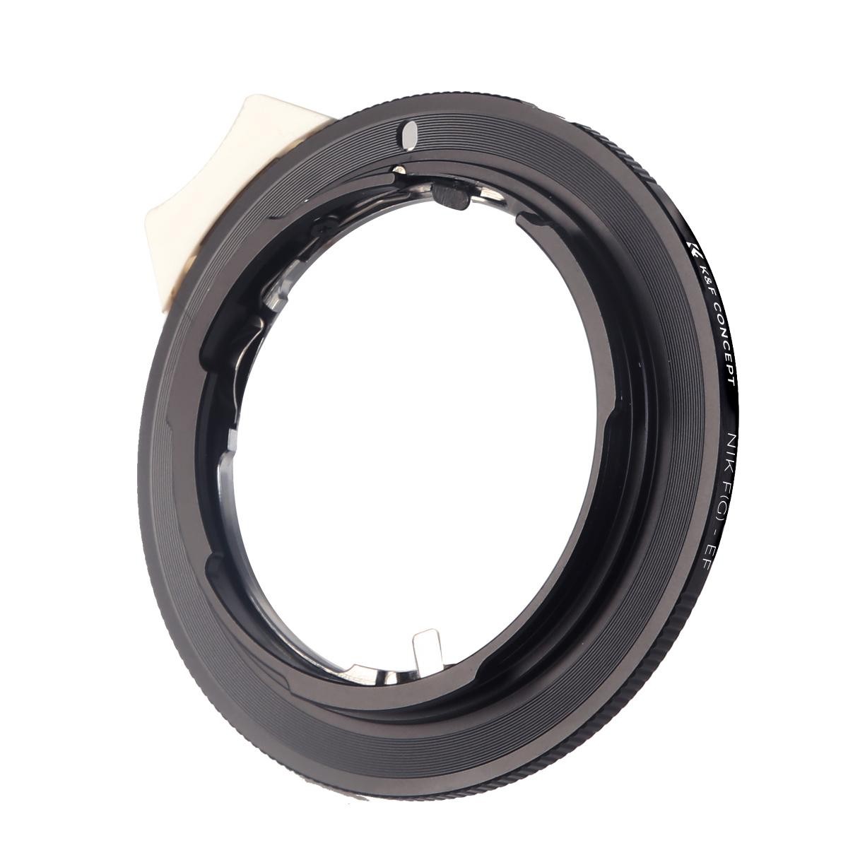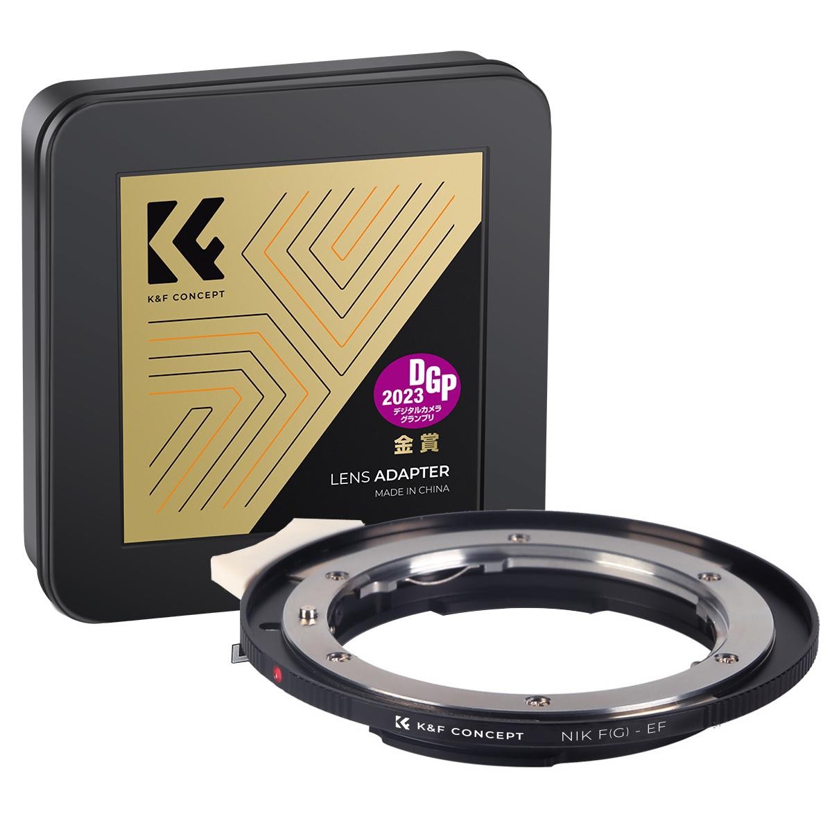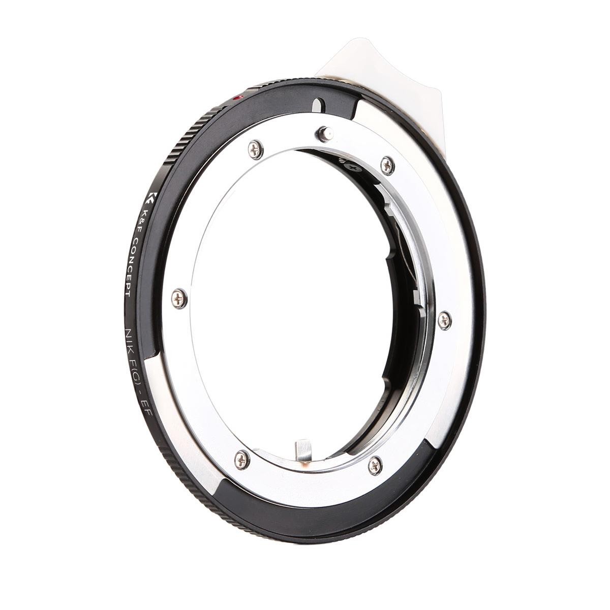 The K&F Nikon G to Canon EOS Mount Adapter allows Nikon G, F, AI, AIS, and D lenses to be mounted on Canon EOS DSLR cameras, providing durable brass and aluminum construction, full manual control, and infinity focus adjustment.