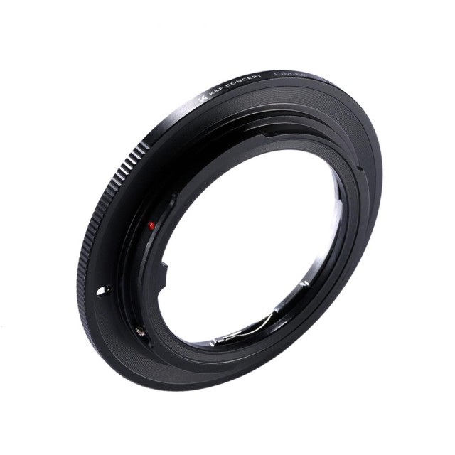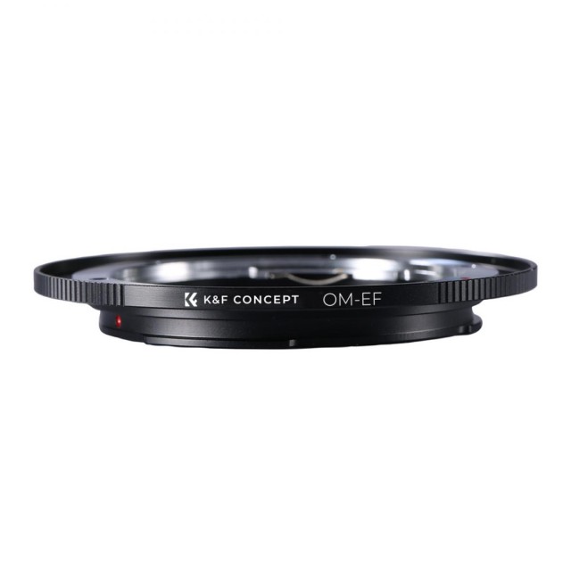 The K&F Olympus OM to Canon EOS Mount Adapter enables Olympus OM lenses to be used on Canon EOS DSLR cameras, featuring durable brass and aluminum construction, full manual operation, and support for infinity focus.