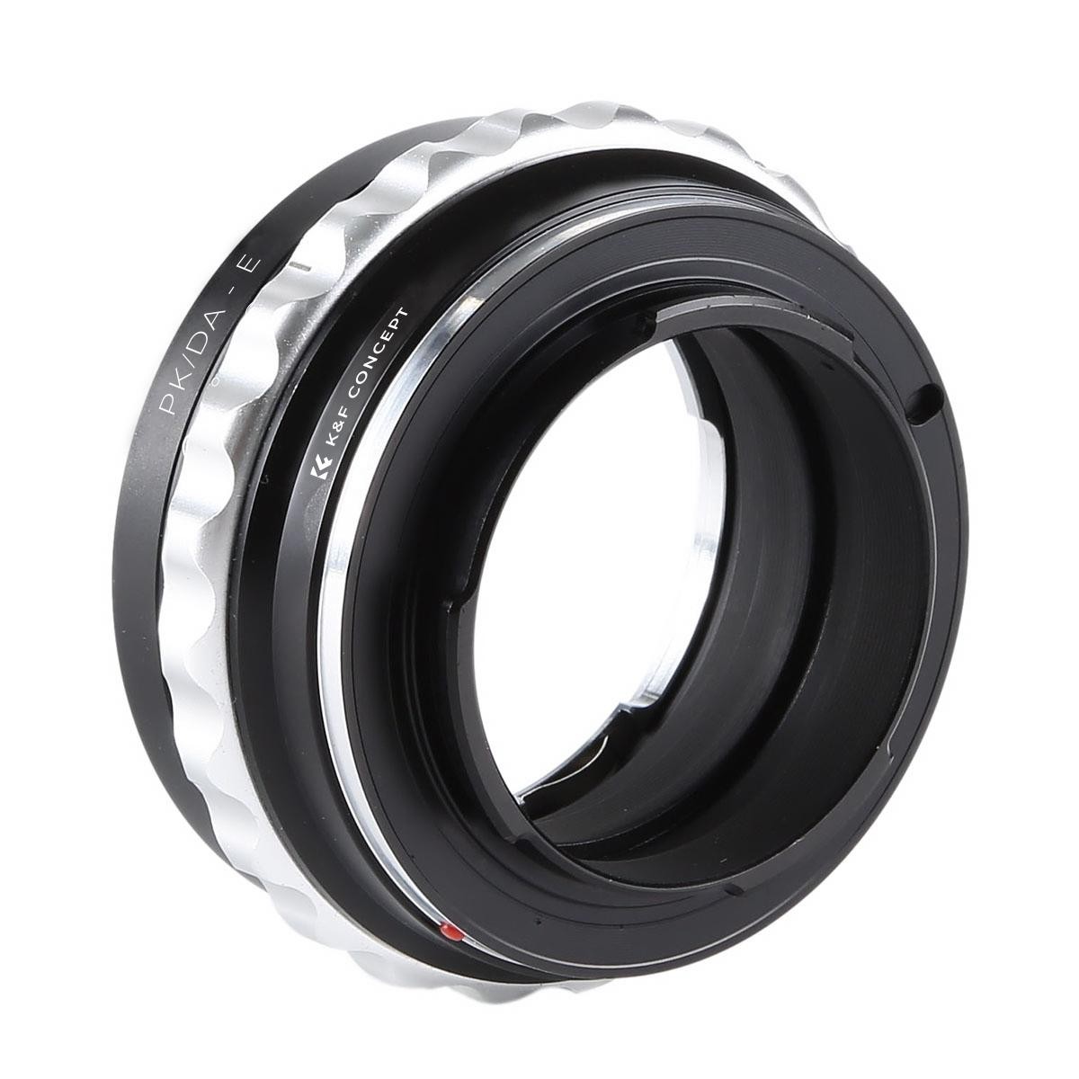 The K&F Pentax K/M/A/FA/DA to Sony E-Mount Adapter allows Pentax K, M, A, FA, and DA mount lenses to be used on Sony E-mount mirrorless cameras, featuring durable brass and aluminum construction, precise manual operation, and support for infinity focus.