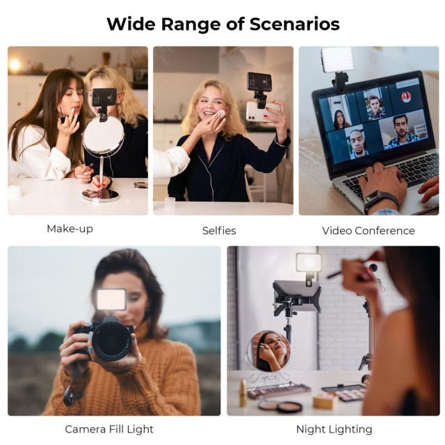 - * 【Trinity multi-scene compatibility】: The fill light can be clipped on the screen of a mobile phone, laptop, tablet, or computer, and is equipped with a 1/4 screw hole converter and a cold shoe adapter, and can also be fixed on a camera or a light stand . Meet your different scene needs, can add light to your shooting and lighting.