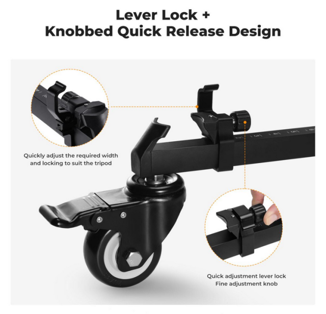 This versatile tripod dolly is perfect for studio, outdoor, or event photography, providing both stability and mobility for capturing high-quality shots with ease.