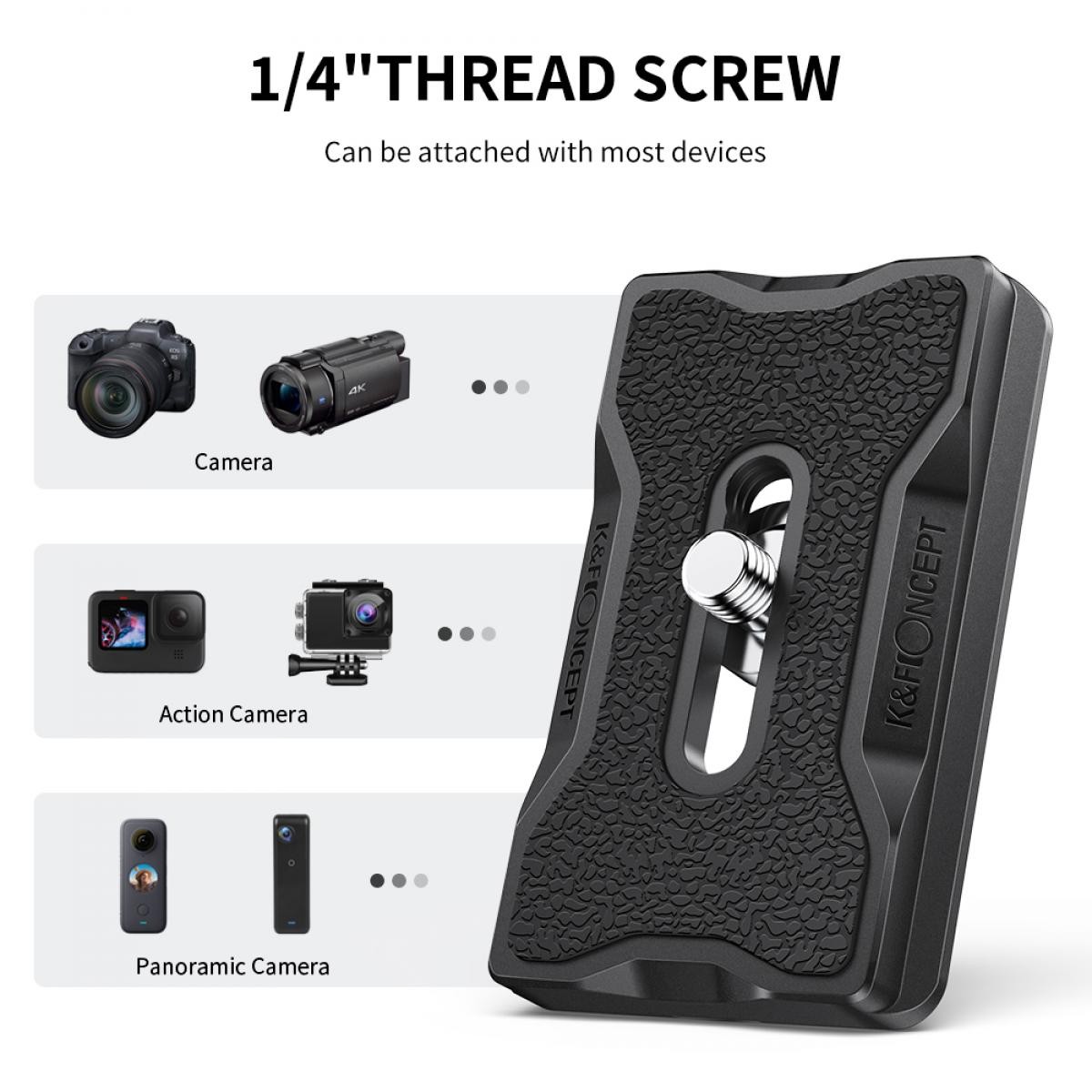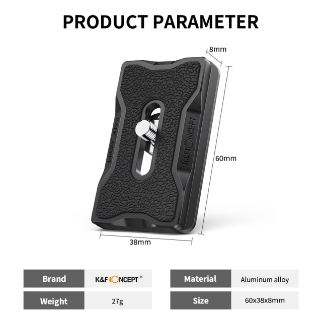 The K&F Quick Release Plate is a lightweight and durable Arca-Swiss–compatible mounting solution, designed for fast camera attachment and removal while providing a secure, non-slip connection for cameras and tripods.