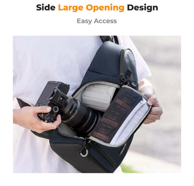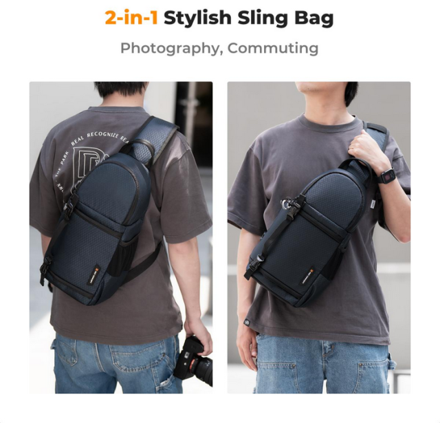 The adjustable shoulder strap (20.8–40 inches) ensures a comfortable fit for men and women, while the sling design allows for quick, easy access to your camera. A tripod holder on the side adds extra functionality for outdoor photography enthusiasts. Compatible with a variety of DSLR, SLR, and mirrorless cameras, including models from Nikon and Canon, this sling bag is an ideal choice for travel, urban exploration, or casual outings.