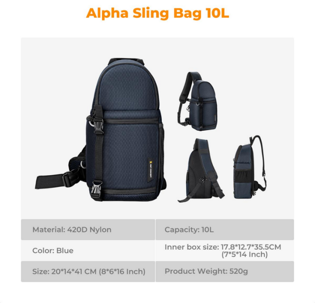 The K&F 10L Urban Wander 02 Camera Sling Bag (Blue) is a durable and versatile chest bag with ample space for your camera gear, accessories, and personal items. Designed for safety and convenience, it's perfect for DSLR, SLR, and mirrorless camera enthusiasts.