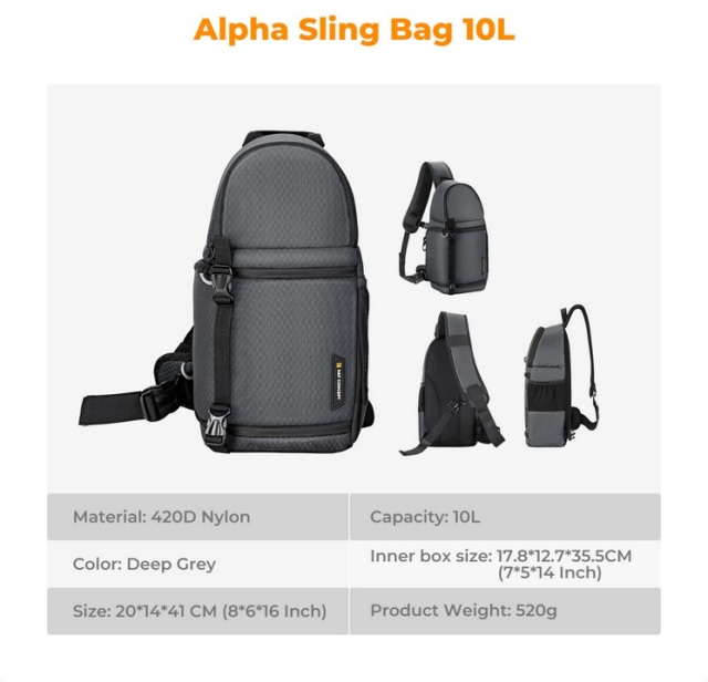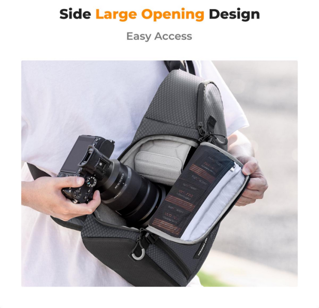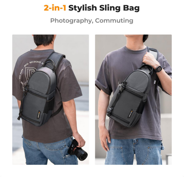 The K&F 10L Urban Wander 02 Sling Bag in gray is a stylish, durable, and spacious camera bag designed for DSLR, SLR, or mirrorless cameras. Its slim body, smart compartments, and adjustable strap make it ideal for travel and outdoor photography.