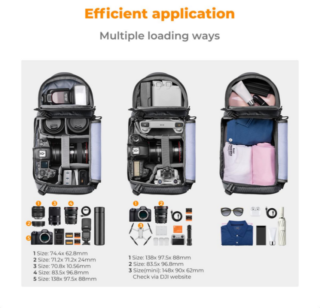 The bag features a secure side safety buckle and soft foam padding to protect your gear from shocks and scratches. The side-opening design offers quick and easy access to your camera, making it perfect for capturing spontaneous moments. The lower compartment, with removable modular inserts, accommodates lenses and flash units, while the upper section is ideal for storing smaller accessories.
