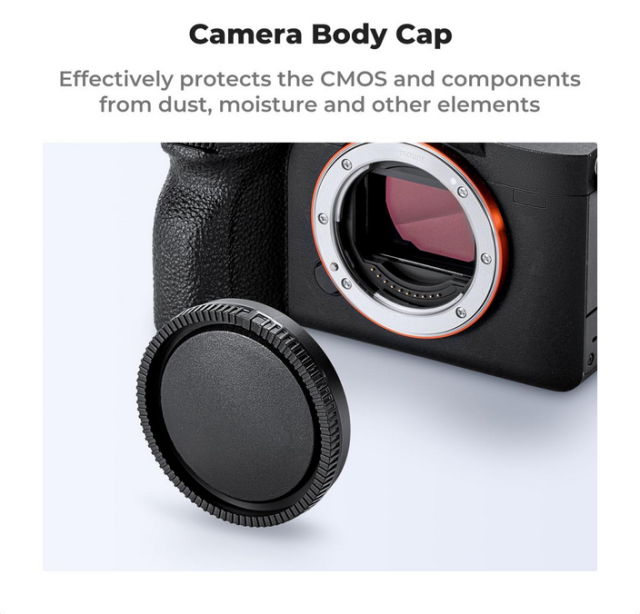 Protect your valuable Sony E-mount camera and lenses with the K&F Sony E-Mount Body Cap & Lens Rear Cap Kit. Designed for compatibility with a wide range of Sony E-mount cameras and lenses, this 7-piece set ensures comprehensive protection against dust, dirt, water stains, and scratches.