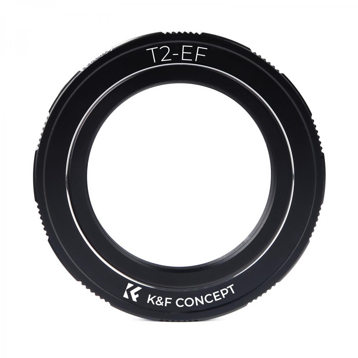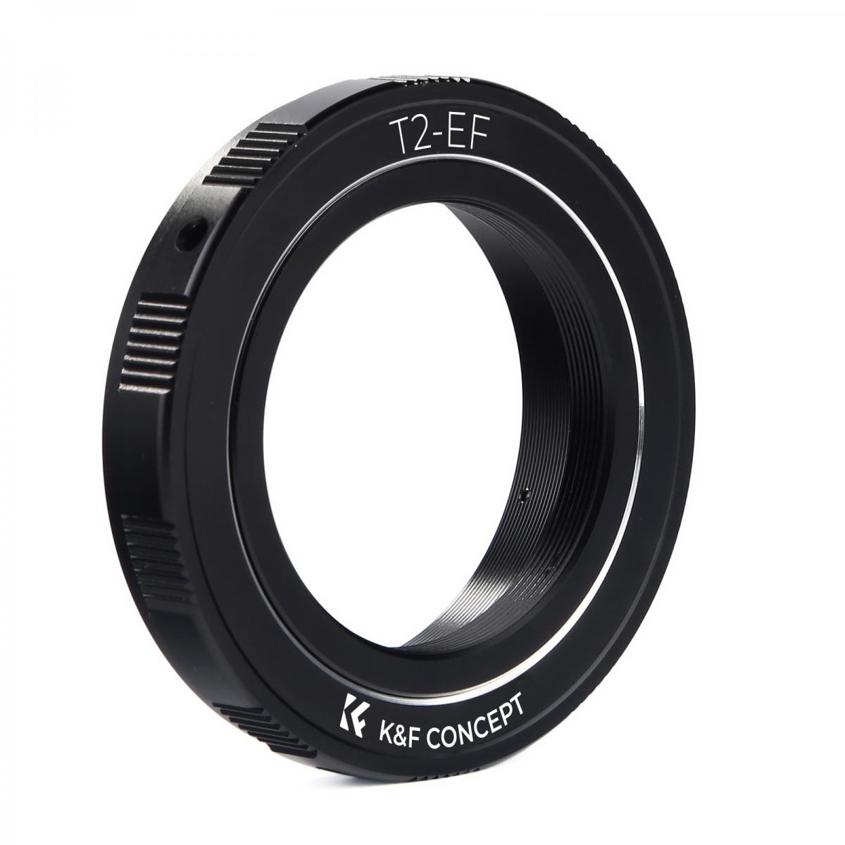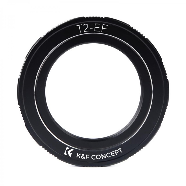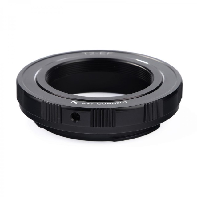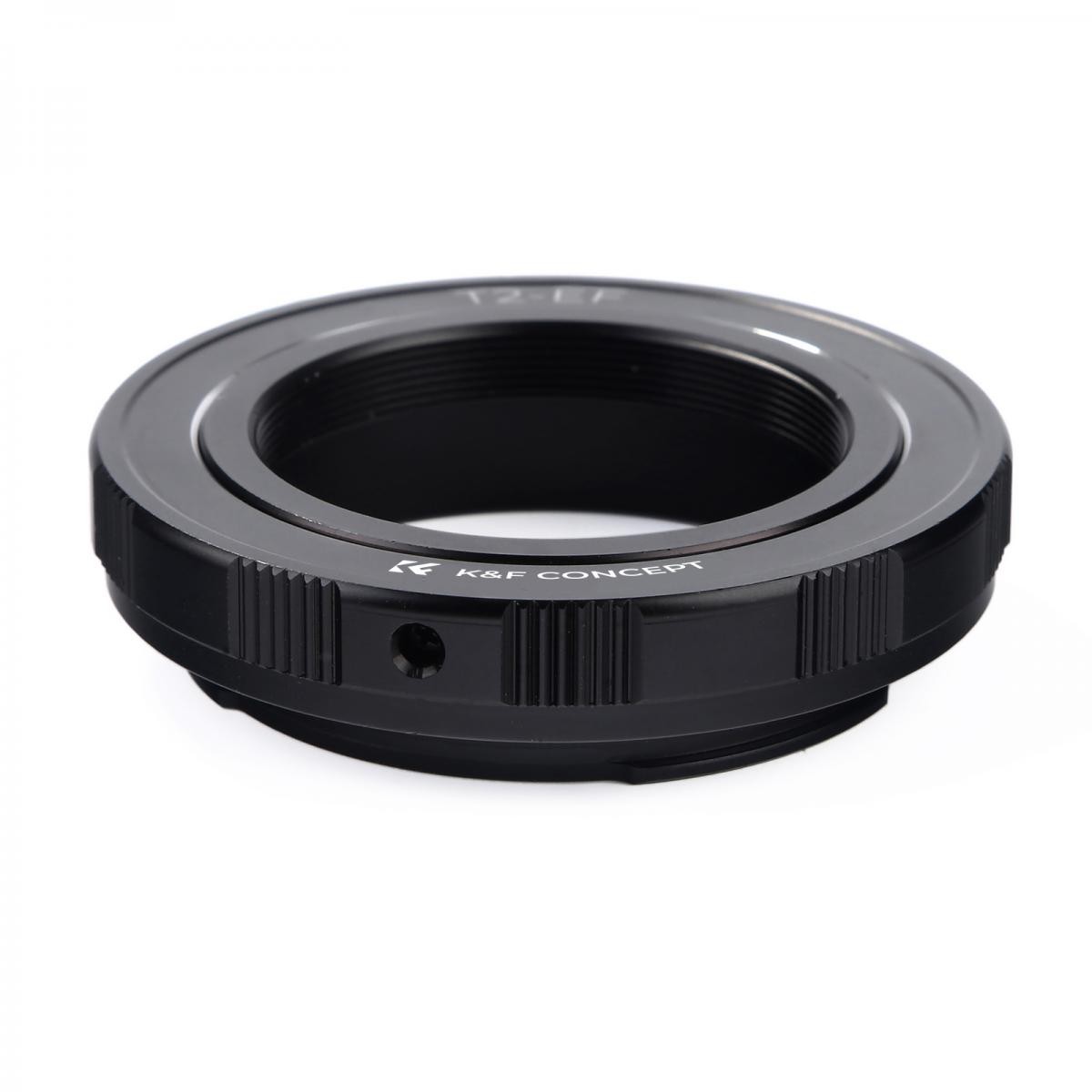 The K&F T2 to Canon EOS Mount Adapter allows T2 mount lenses to be used on Canon EOS DSLR cameras, featuring durable brass and aluminum construction, full manual control, and support for infinity focus.