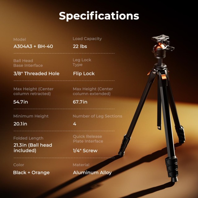 | Tripod Load capacity | 10kg |