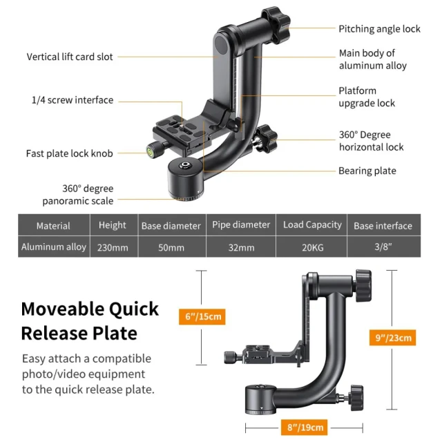 ·High load capacity: This static head can hold up to 20 kg. Allows you to capture more beautiful moments in animal and sports photography