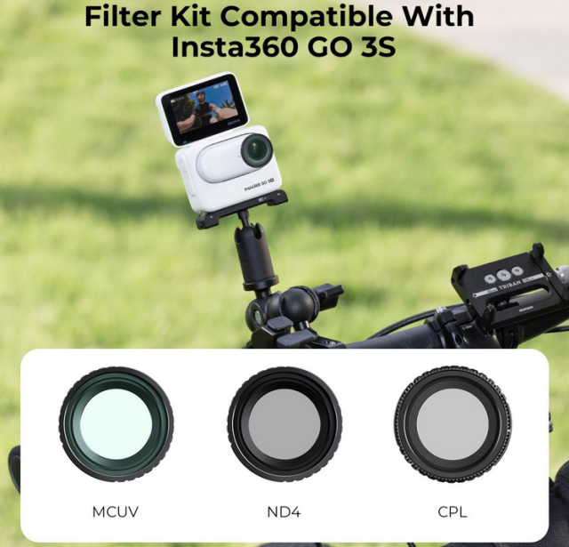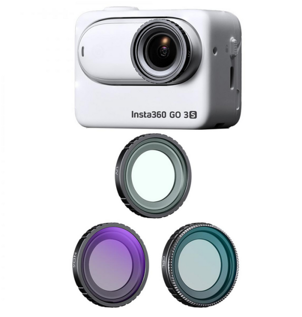 The K&F UV+CPL+ND4 Filters Kit, designed for Insta360 GO 3S action cameras, includes multi-coated filters to protect your lens and enhance image quality by reducing glare, haze, and controlling light.