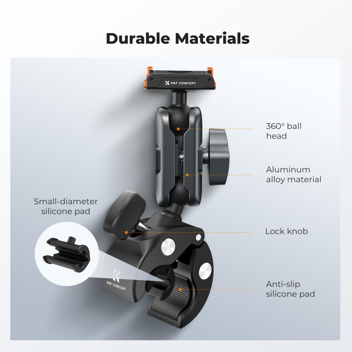 This quick-release clamp mount from K&F Concept is used to attach accessories. You can use it, for example, as a clip on the handlebars of a bicycle or motorcycle.