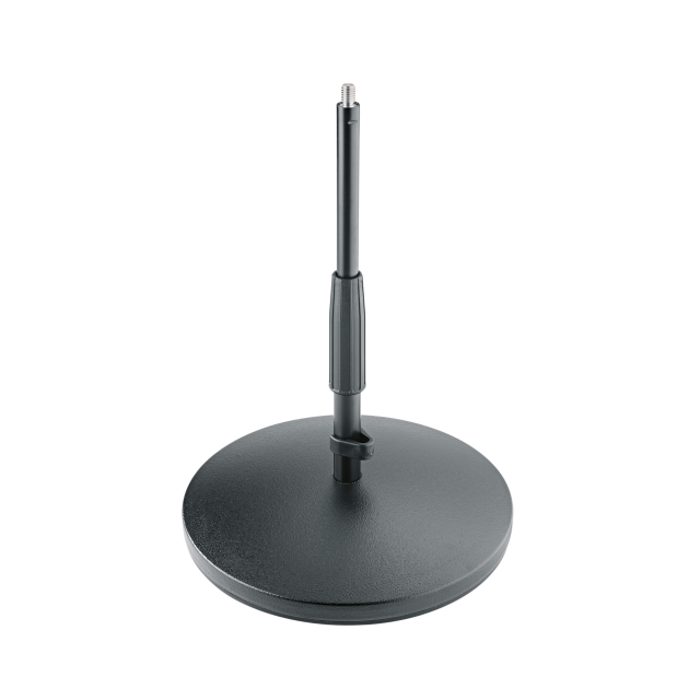 Low stand with a heavy cast iron base for maximum stability. Well suited for microphoning amps, percussion, etc.The circular rubber insert ring filters foot step sounds and reduces the transmission of unwanted sounds. Sleek adjustable clutch for easy height adjustment.