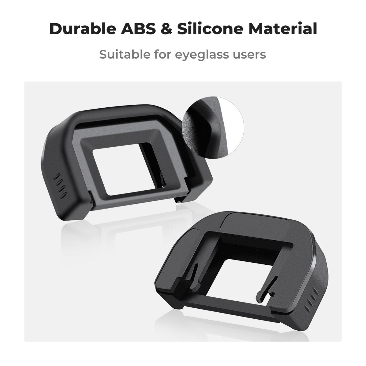 The included pair of high-quality viewfinder eyecups helps block stray light from entering the viewfinder, allowing for a clearer and more focused view—especially useful when shooting outdoors or in bright environments. Made from durable ABS and soft silicone, the eyecups also protect the viewfinder from scratches, impacts, and daily wear.