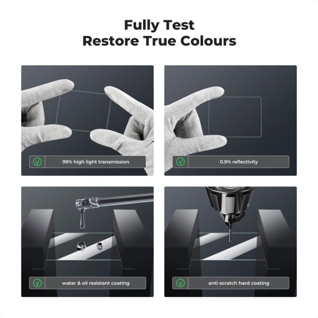 Each protector offers ultra-clear 99.99% transparency, maintaining the camera’s natural image quality without compromising brightness or color accuracy. The hydrophobic and oleophobic coatings help resist smudges and make cleaning effortless. With a slim 0.33mm thickness, the screen protectors retain full touch sensitivity and smooth operation, making them virtually invisible once installed.