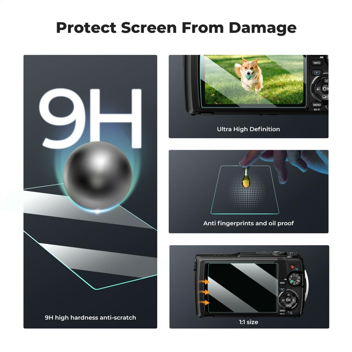 Made from high-quality 9H hardened glass, which provides excellent resistance to scratches and punctures from sharp objects – reliably protecting your camera's display.