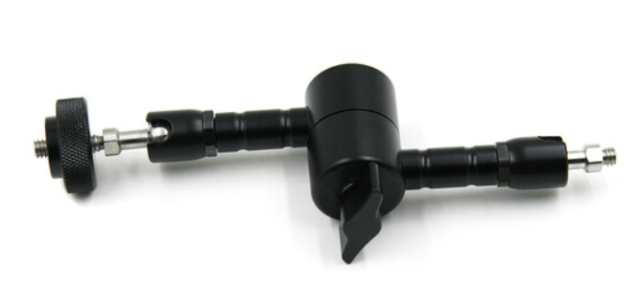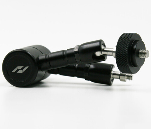 The Kinefinity 6" Articulating Arm (A612-509-01) is a heavy-duty, metal-alloy positioning arm designed for professional cinema and video rigs, capable of supporting loads up to 8.8 lb (4 kg). Featuring three fully articulating joints with a single central twist-lock handle, it allows fast, secure adjustments and rock-solid hold in any position. Both ends terminate in 1/4"-20 male threads for universal compatibility with monitors, EVFs, LED lights, microphones, or camera cages. At just 15.2 cm (6") when collapsed, it offers a compact yet powerful solution for shoulder, gimbal, or tripod-mounted setups—ideal for Kinefinity MAVO/Edge users needing precise, reliable accessory placement without added bulk.