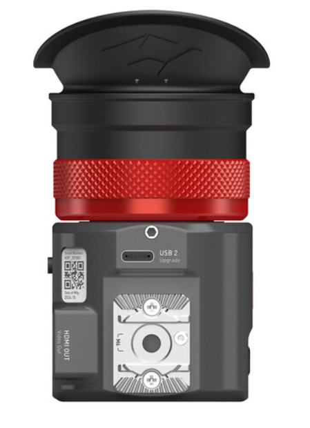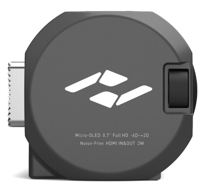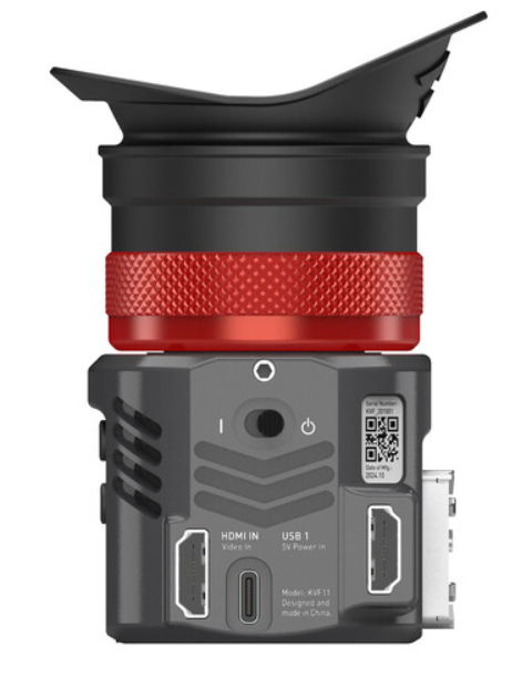 The Kinefinity EAGLE HDMI e-Viewfinder Black (K110-002-01) is the world’s lightest professional-grade HDMI EVF, turning any mirrorless or HDMI-equipped camera into a true shoulder-rig cinema tool. Its 0.71" 1920×1080 Micro-OLED panel delivers 10,000:1 contrast, 10-bit color, and zero-delay FPGA processing for tack-sharp 1080p60 monitoring. HDMI in + loop-out supports 1080p/i 23.97–60 fps. Full toolset: red/blue/green peaking, false color, zebra, waveform, vectorscope, histogram, anamorphic de-squeeze (1.3×–2.0×), frame markers, flip/rotate, and custom 3D LUT upload via USB-C. -2 to +6 diopter with heated anti-fog eyepiece works for glasses wearers. Run/stop trigger over HDMI plus five customizable buttons. Mounts via ARRI rosette + 1/4"-20 (rosette plate included) or optional M6/Cyber plates. Powered by included 9.8" USB-C cable from MAVO/TERRA USB-C PD port or any 5–20 V source.