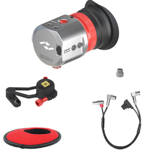 The Kinefinity EAGLE SDI e-Viewfinder (Cyber) (K911-001-02) is an ultralight silver 0.7" 1080p Micro-OLED EVF with 10-bit color, 10,000:1 contrast, zero-latency 3G-SDI input, and pro tools. Includes Mini Mount (360°), 15.7" D-Tap + BNC combo cable, and -6 to +2 diopter—perfect for MAVO Edge/ARRI/RED.