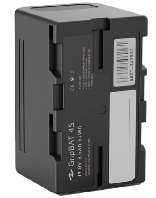 The Kinefinity GripBAT 4S BP-U30 (A410-202-01) is a 52 Wh / 14.8 V Li-ion brick for MAVO Edge/mark2, TERRA, and Sony FS5/FS7/FX6/FX9. Delivers 70 W / 5 A continuous, 4-LED gauge, full protection, 200 g featherweight—perfect hot-swap on KineKIT UPS baseplate or Sony rigs.