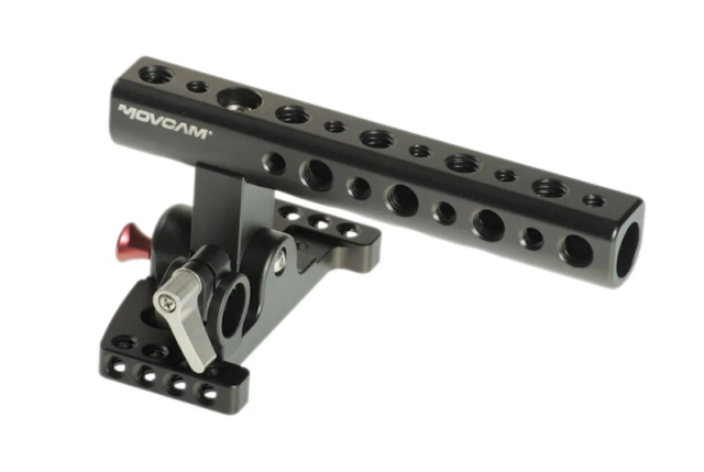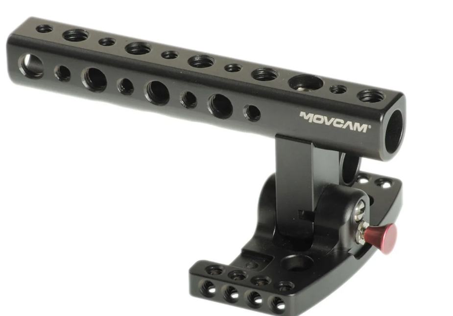 The Kinefinity A601-911-01 Movcam Enclosed Top Handgrip is a lightweight, foldable D-shaped top handle designed exclusively for the KineKIT-Edge cage system on MAVO Edge 8K/6K cameras, providing an ergonomic, enclosed grip that slides onto the top NATO rail and locks securely with a single lever while folding flat for storage and unobstructed low-angle shooting.