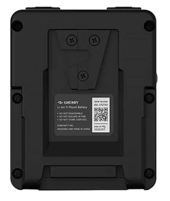 The Kinefinity PD KineBAT 200 V-Mount (A430-002-01) is a 190 Wh / 12,800 mAh powerhouse with 2× D-Tap (10 A) + 2× USB-C PD (60 W) ports. Charges to 80 % in 2 h via 65 W USB-C, powers MAVO Edge 5 h solo / all day dual, ultra-compact 1.01 kg—perfect for gimbal, drone, and long takes.