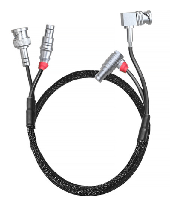 The Kinefinity Power, Run/Stop & BNC Cable 27.6" (K611-002-02) is a 70 cm braided combo cable with straight BNC + 5-pin LEMO (camera) to right-angle BNC + 5-pin LEMO (EAGLE SDI). Delivers 3G-SDI video + power + run/stop in one clean run—perfect for shoulder rigs and Steadicam.