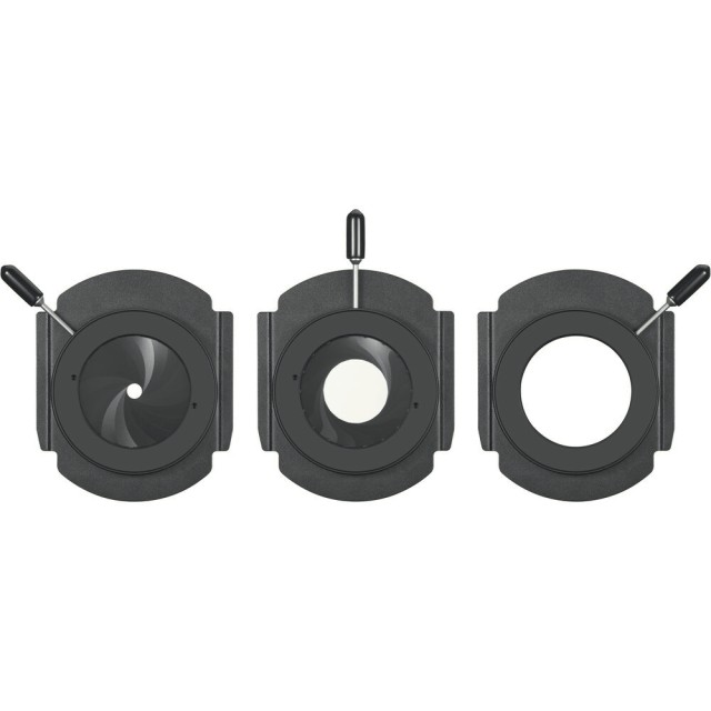 The Godox Knowled Adjustable Iris Diaphragm (MLP-ID) allows precise adjustment of the image circle for MLPK projection attachments when used with ML-series LED compact monolights, giving you full control over projected light shapes.