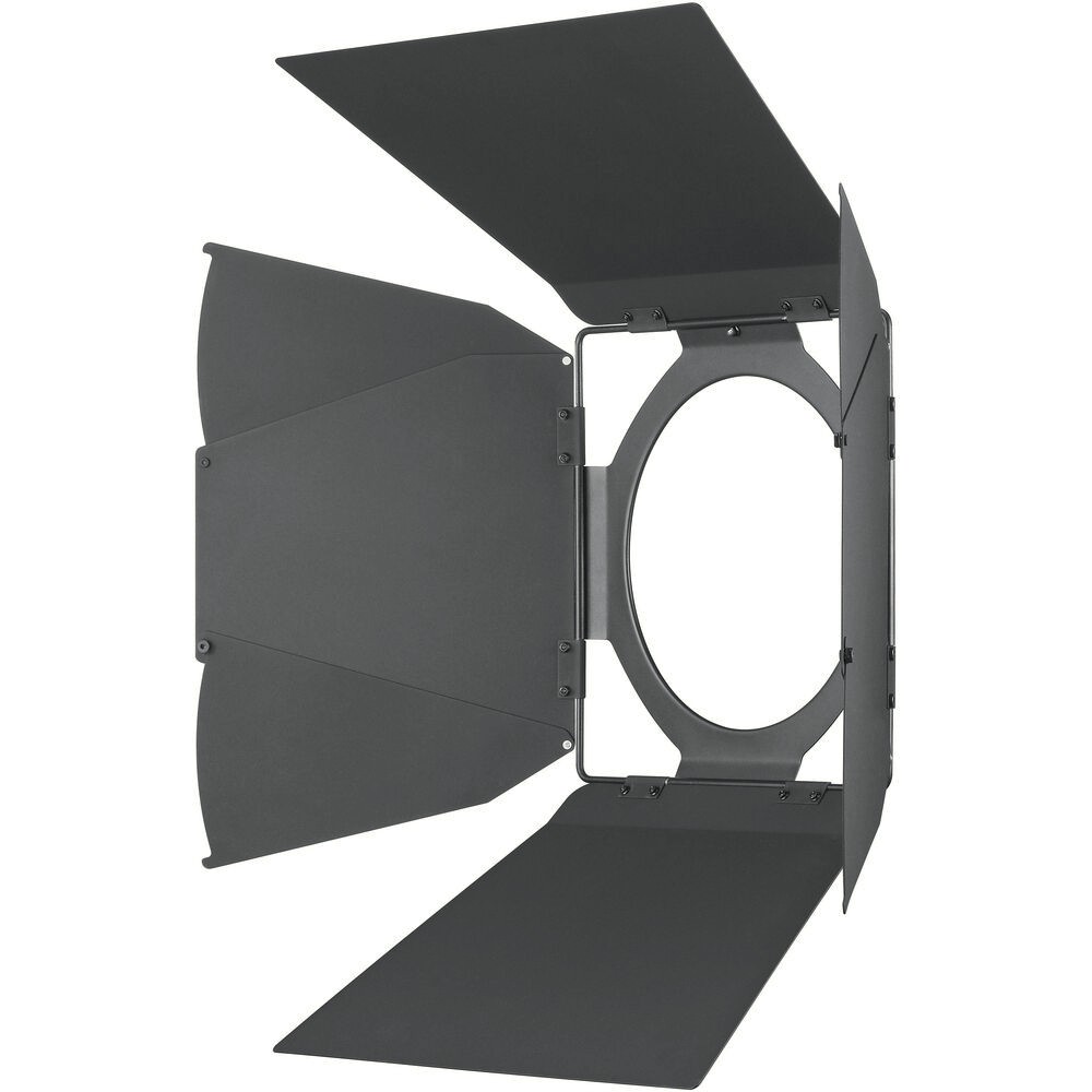 The Godox Knowled GR45B Barndoor is an essential light-modifying accessory for users of the Godox MG1200Bi and MG2400Bi high-output LED systems. Designed specifically for the 45° GR45 and 60° GR60 reflectors, this durable metal barndoor enables precise directional control, allowing cinematographers, gaffers, and photographers to shape light exactly where it is needed while minimizing spill in the surrounding environment. Its sturdy construction ensures reliable performance in demanding production settings, making it ideal for film, broadcast, commercial, and studio applications. Whether narrowing a beam, blocking light from hitting backgrounds, or creating defined lighting edges, the GR45B offers a simple yet highly effective solution for professional light control.