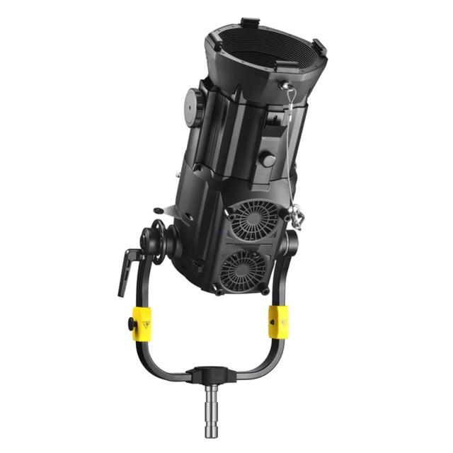 Its class-leading lens system delivers sharp, clean, aberration-free projections, making it ideal for studio, film, commercial, and theatrical applications. The integrated shutter blades allow precise beam shaping, while the included gobos enable the creation of natural, dramatic, or abstract lighting patterns such as window light or foliage shadows. An optional iris diaphragm further refines spot size control.