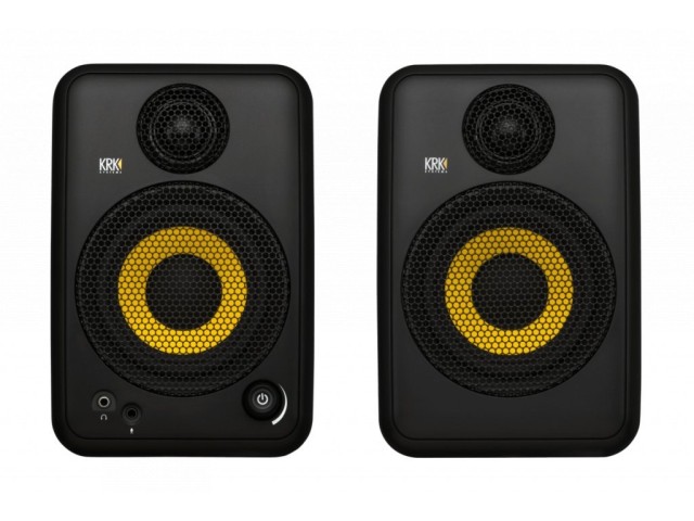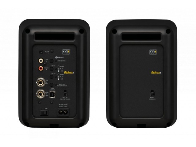 TheKRK GoAux 4 are active portable nearfield monitors in a 4+1" configuration with a total power output of 100W with Bluetooth and USB connectivity. They come with a carrying bag, adjustable stands and a measurement microphone for the built-in automatic room correction ARC function.
