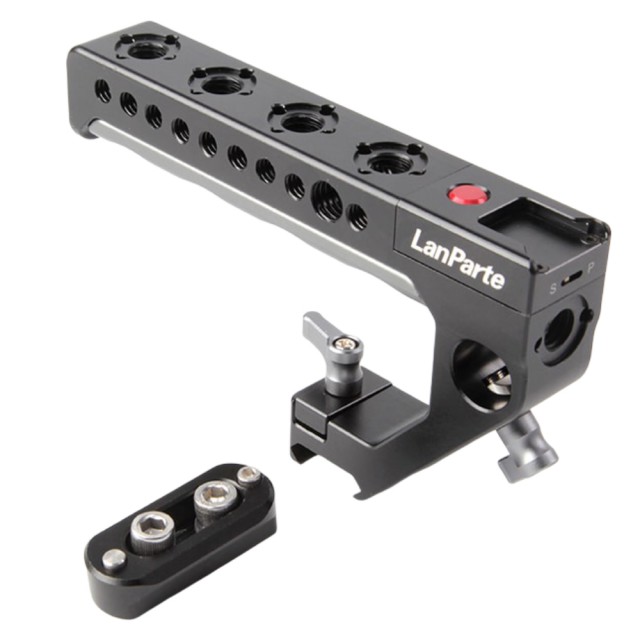 The handle attaches with a 3/8"-16 threaded knob with ARRI-compatible anti-twist pins to securely lock the handle to the camera or cage and prevent it from twisting. The handle offers a plethora of accessory mounting options, including two cold boots, five ARRI accessory mounts, 1/4"-20 and 3/8"-16 threaded holes, and one 15mm rod hole.
