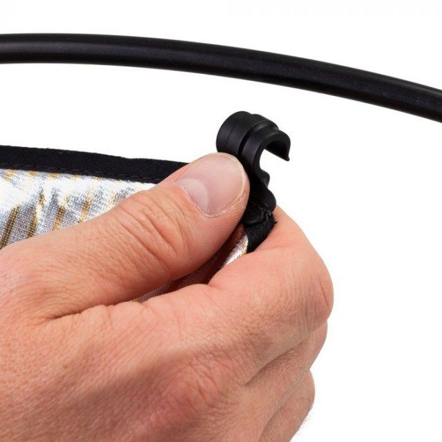 HaloCompact boasts a special patented reflector plate design that makes them even easier to carry than any other standard reflector plate! Unlike many traditional steel-framed reflector plates, the HaloCompact 82cm is constructed with Manfrotto's new innovative RapidExoframe technology from Lastolite. The foldable lightweight aluminium frame slides in quickly and easily and the reflector cover simply attaches to the frame. The cleverly designed RapidExoFrame design allows the frame to be broken down into small parts and, together with the folded fabric parts, stored in a portable package measuring 6.5 x 27 x 6.5 cm (2.5" x 10.5") and weighing a total of just 335g.