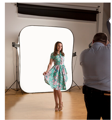 Constructed from durable white fabric, the HiLite acts not only as a background but also as a large rear softbox, capable of contributing to subject lighting as well. This dual functionality simplifies lighting setups, often requiring just a single additional front light to complete the scene. Its free-standing design allows for easy placement without additional support, while also offering compatibility with background support systems for more permanent setups.