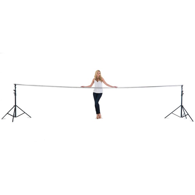The Lastolite Solo Background Support Extension 2m is designed for use with the Solo Background Support System, providing photographers with additional width to support larger backdrops. This extension kit includes two durable aluminum rods with elastic inserts that seamlessly integrate with the existing crossbar, extending its length from 3.96 meters up to 6 meters. This makes it ideal for handling wide studio backgrounds required in professional photography setups.