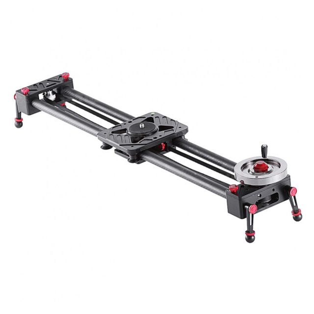 The Latour GT-T80 camera slider features lightweight 29" long carbon fiber rails. The aluminum camera platform moves smoothly and quietly along the rails thanks to precision bearings. The slider can be used on a table or ground, or it can be mounted to a tripod or stand with either a 3/8" or 1/4-20" screw. The slider's leg angles and height can be adjusted.