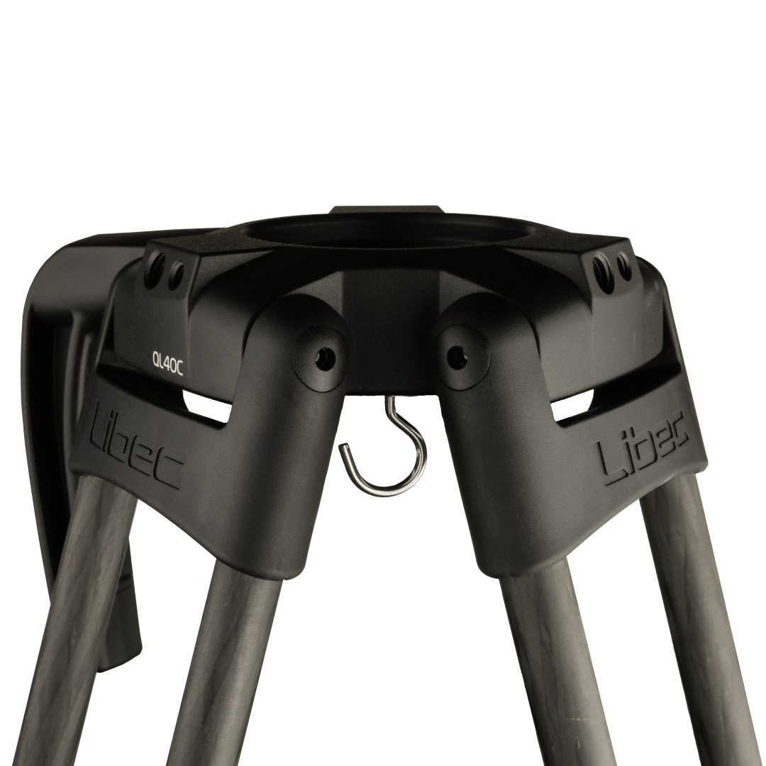 The Libec NX-200QC tripod set consists of QL40C carbon fiber legs, NH20 video head, and SP-1B bottom spreader. The RC-30 bag is also included.
