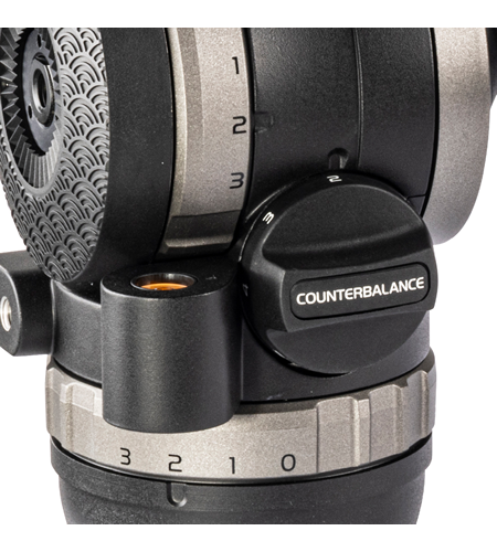NH40 HeadThe new NH40 video head features improved durability for long-term use and significantly increased clamping force of the sliding plate and locking force of the pan and tilt mechanism. Compared to previous models, the "clicking" feel of each resistance control wheel has been improved, and their clarity has also been increased by adding indicator marks to the counterweight control wheel and resistance control wheels.