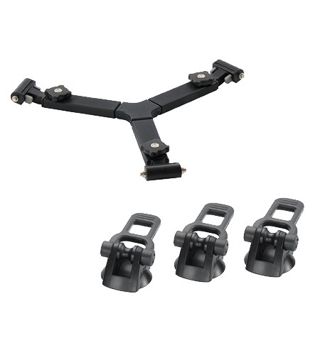 The tripod base is equipped with three sets of ports with 1/4" and 3/8" threads, which allow for more stable and convenient connection of accessories such as monitors or lights.