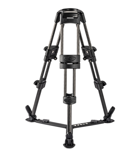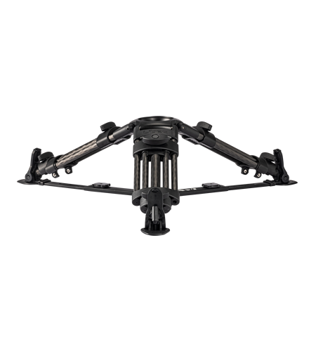 Thanks to its carbon fiber legs, this sturdy two-section "baby" tripod weighs only 2.7 kg, including the floor spreader.