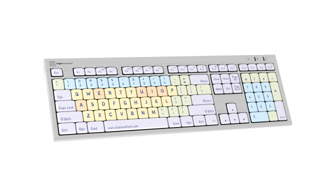 On top of the special Dyslexie-font the keyboard also includes color-coded vowels, consonants, numbers and function keys and helps the user learn the location of letters, numbers and other keys on the keyboard.