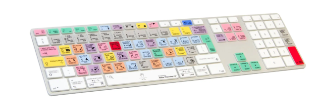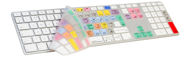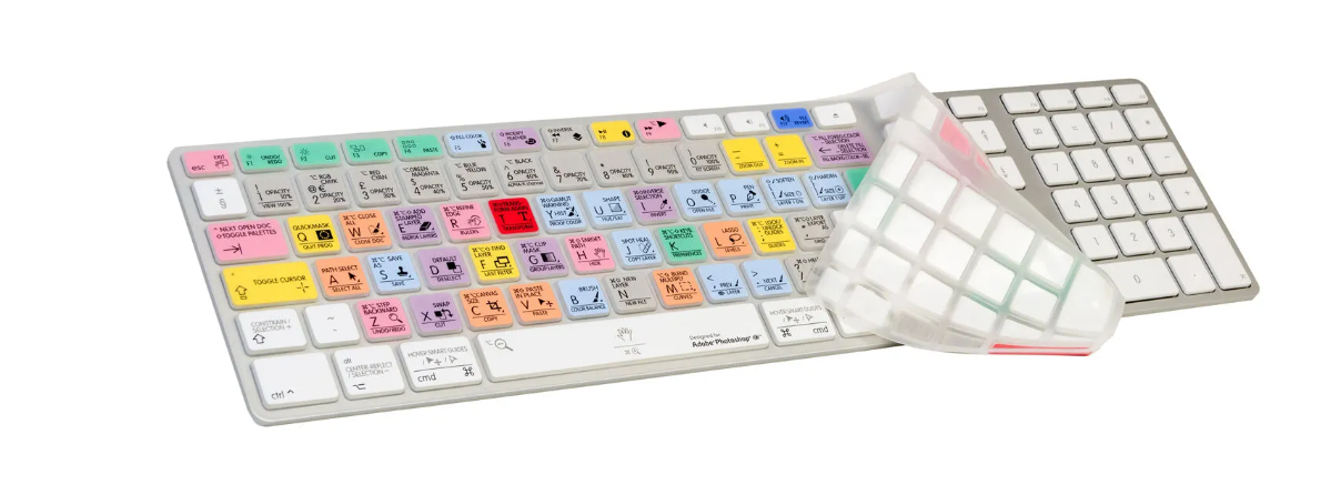 The Logickeyboard Photoshop CC Mac Keyboard Skin is a thin, color-coded silicone cover designed for Apple Ultra Thin keyboards. It provides clearly labeled shortcuts for Adobe Photoshop CC while protecting your keyboard from dust, spills, and wear.