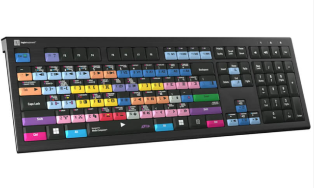 The Logickeyboard Avid NewsCutter Slim Line PC Keyboard is a professional shortcut