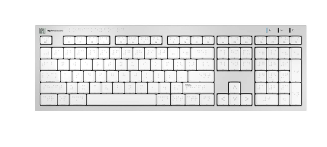 The Logickeyboard Braille Bluetooth MAC Assistive Keyboard is a wireless, accessible