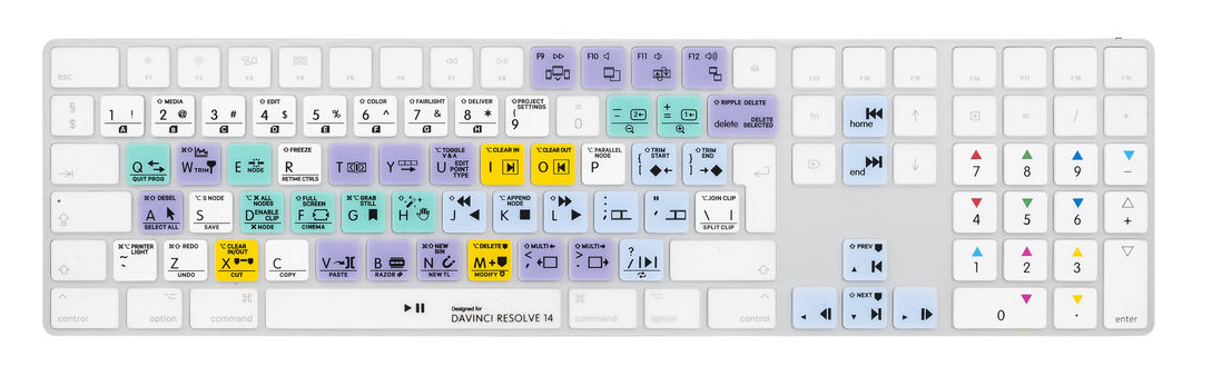 The LogicKeyboard Apple Final Cut Pro X Astra 2 Mac Keyboard is a backlit, color-coded