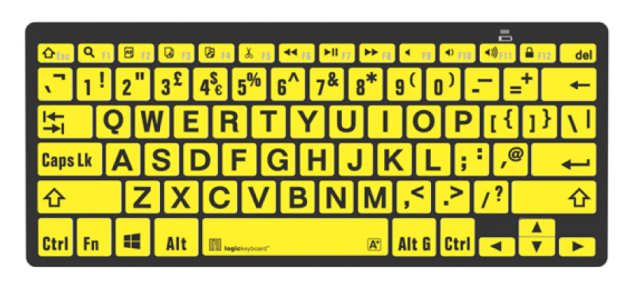 The Logickeyboard XLPrint Bluetooth Black on Yellow UK PC Keyboard by Logickeyboard is a large-print Bluetooth mini keyboard designed for vision-impaired and mature-aged users. Its high-contrast keys and compact design make typing easier and reduce eye strain.