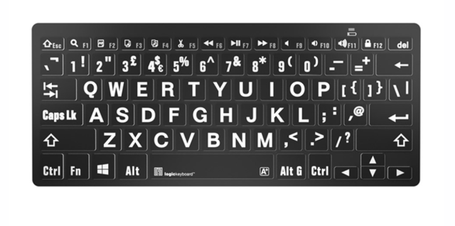 The LogicKeyboard XLPrint Bluetooth White on Black PC Keyboard is a large-print, accessible keyboard designed for Windows users with visual impairments. Featuring 78 keys with bold white-on-black lettering, Bluetooth connectivity, and tactile scissor-switch keys, it offers a comfortable, portable, and wire-free typing experience.