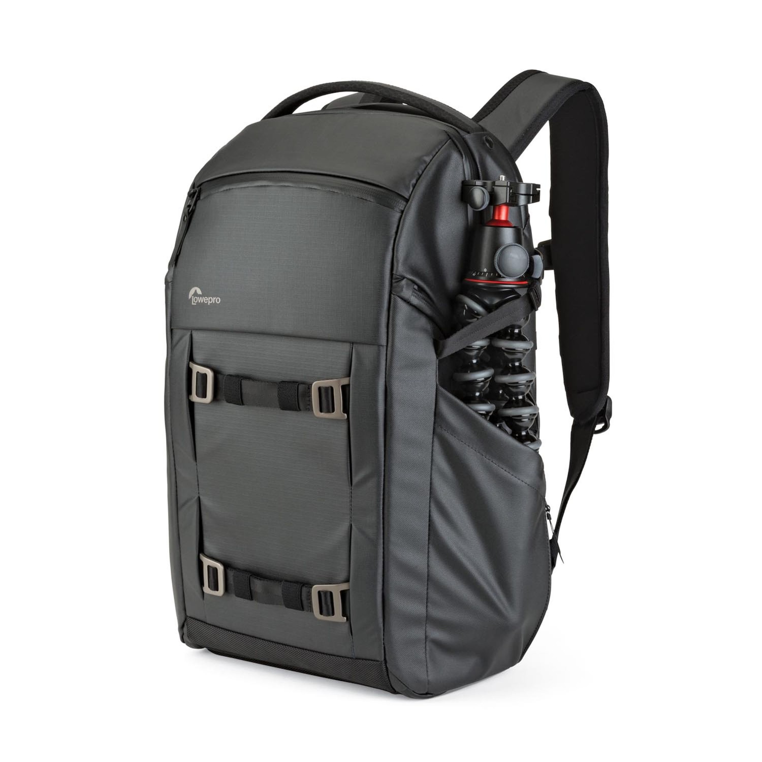 The black Lowepro FreeLine Backpack 350 AW is a versatile backpack that offers two primary configurations. The backpack is suitable for protecting and carrying photo equipment, a laptop, accessories, and personal items.