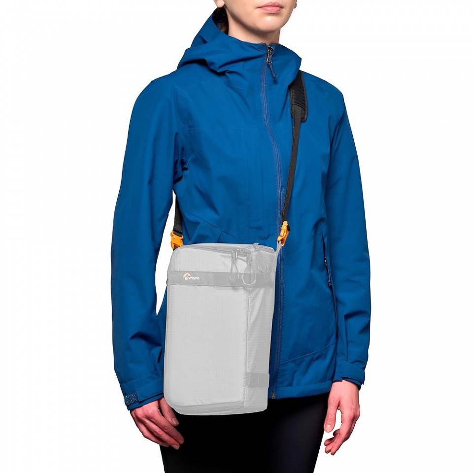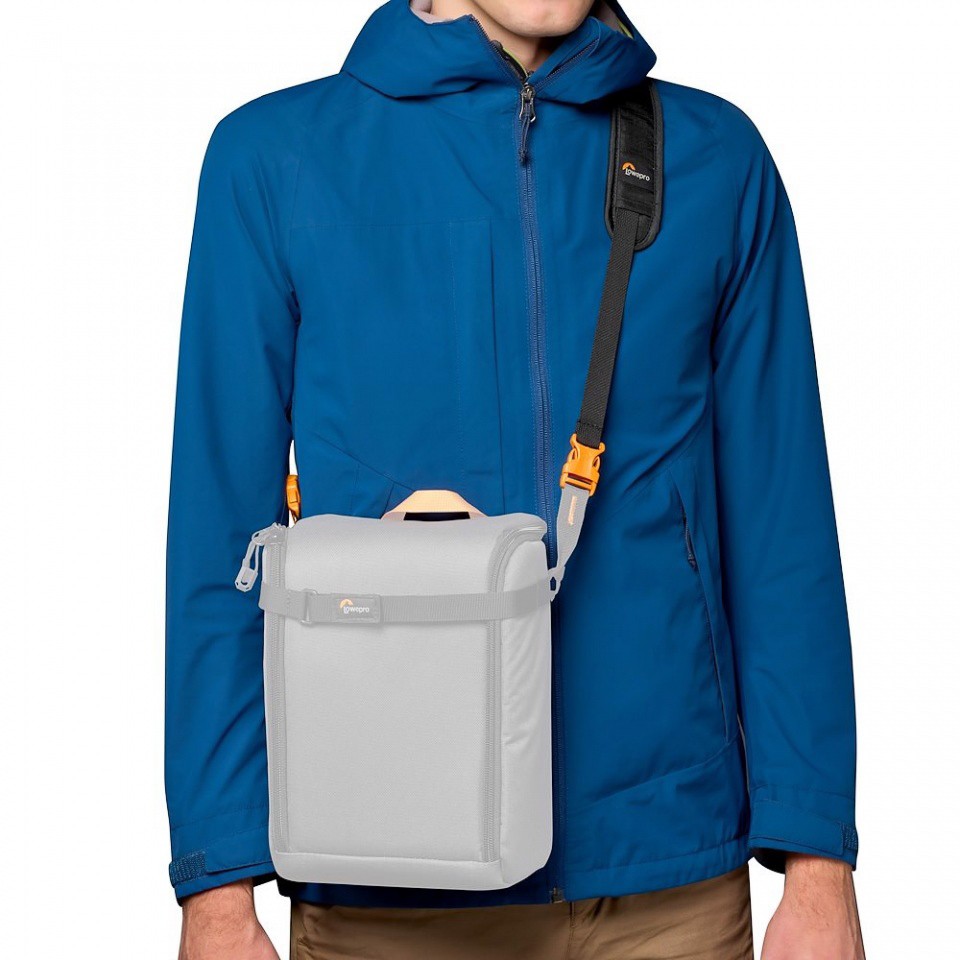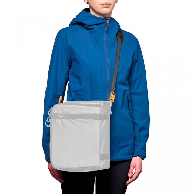The shoulder strap can be attached to the GearUp photo box (not included) or directly to the camera using connectors.
